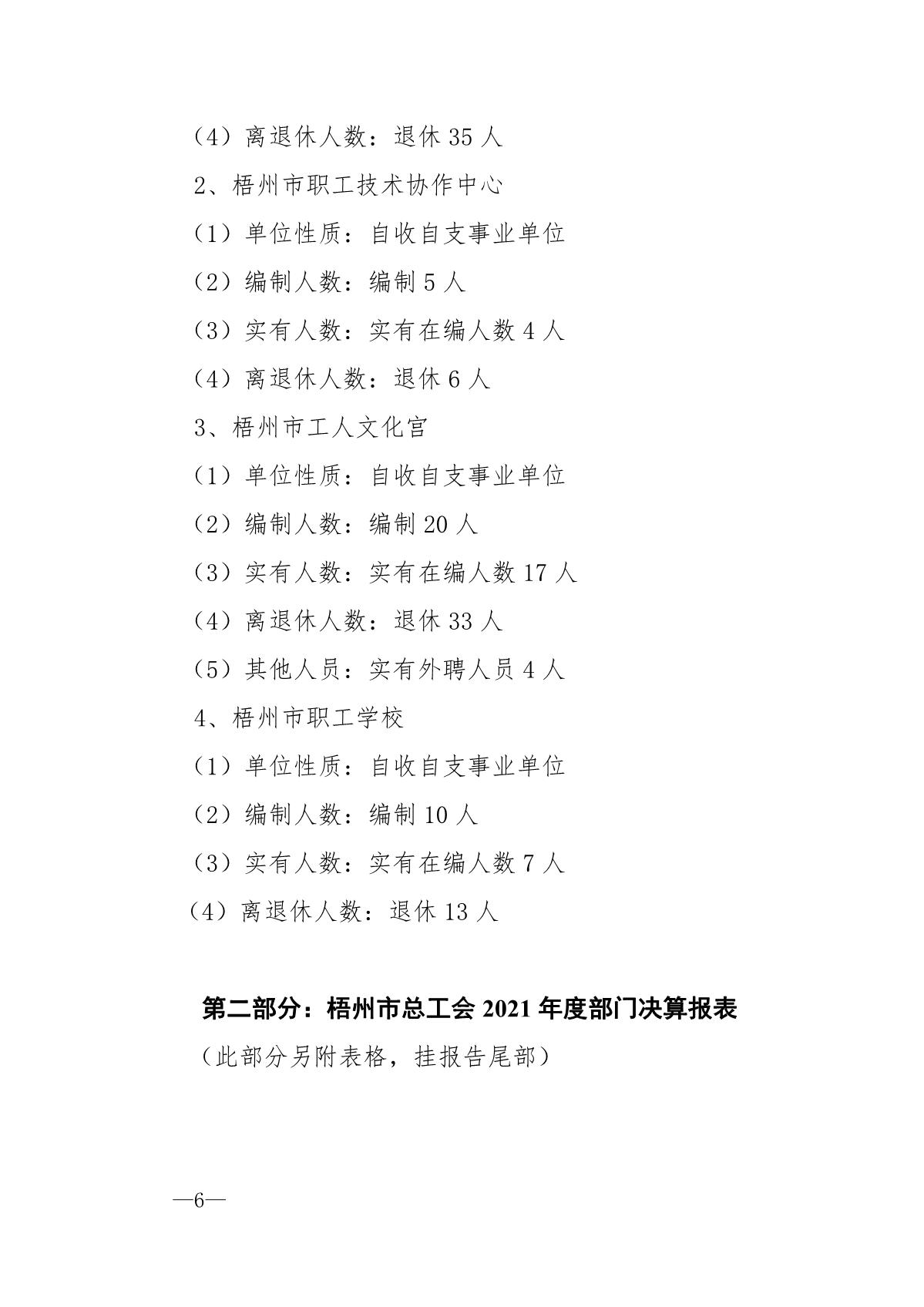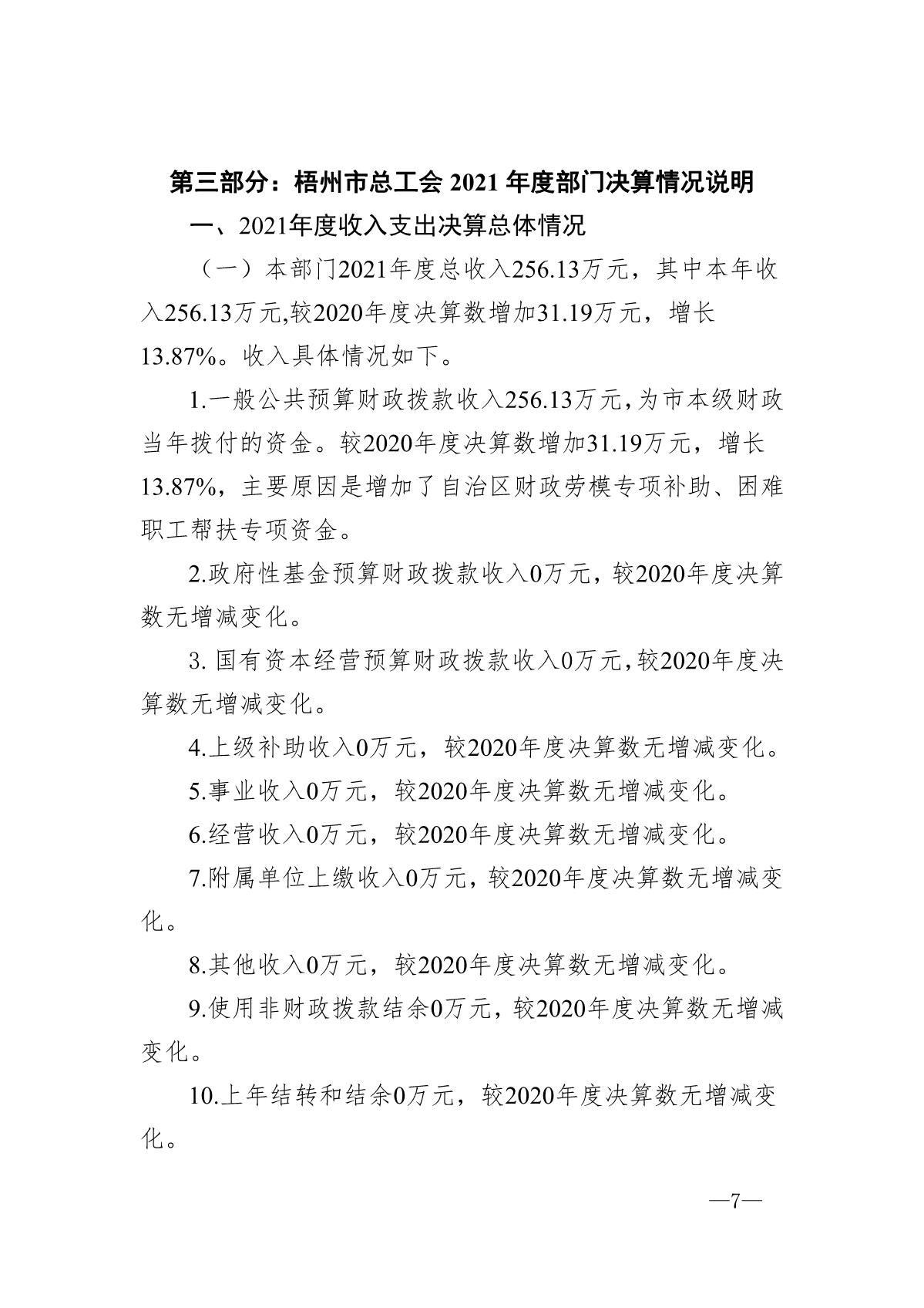 梧州市總工會(huì)2021年度部門決算公開說明