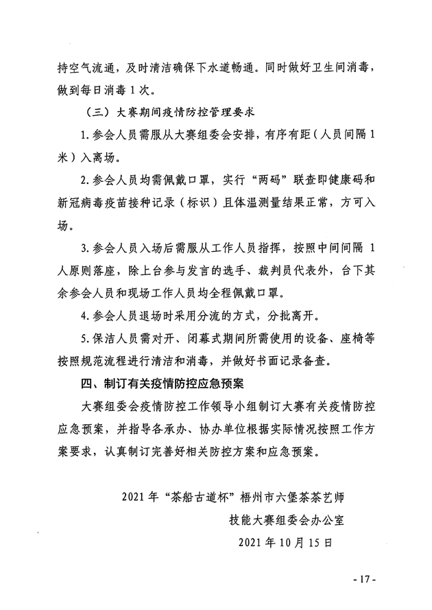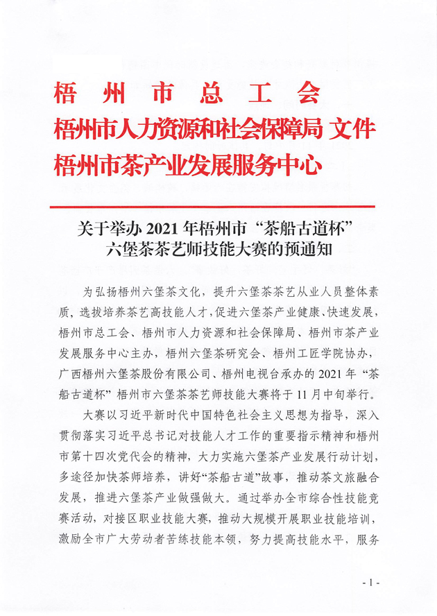關于舉辦2021年梧州市“茶船古道杯”六堡茶茶藝師技能大賽的預通知