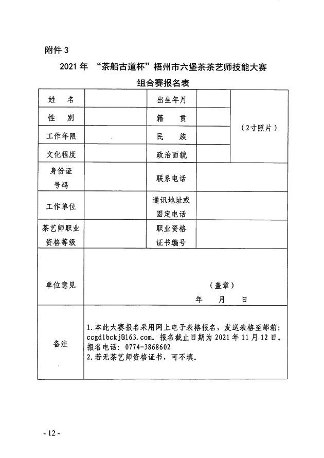 附件2-2021年 “茶船古道杯”梧州市六堡茶茶藝師技能大賽個人報名表.docx